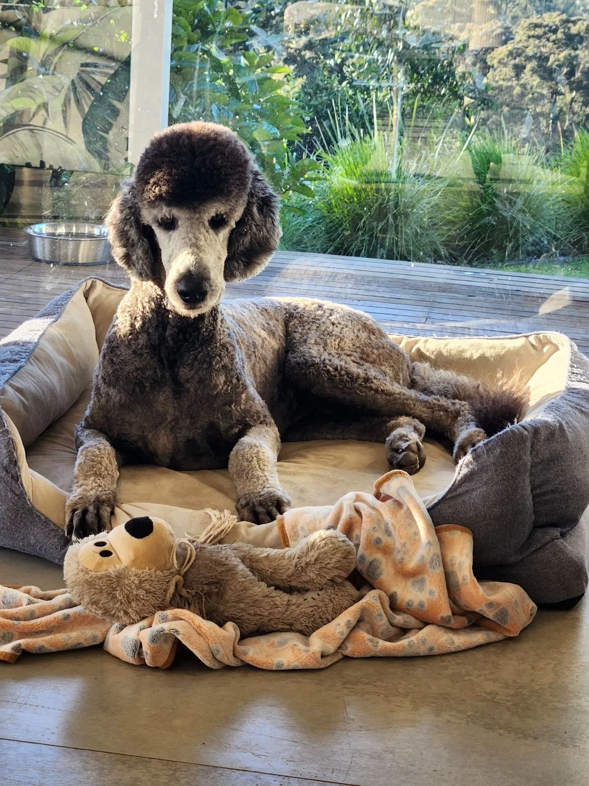 Winston lives in Sydney NSW and his Mum and Dad say “We get so much attention with Winston”. We get photos of Winston travelling with his family. He loved the snow in the Victorian Alpine region. Winston is 25 Kilograms and is the most beautiful Silver.